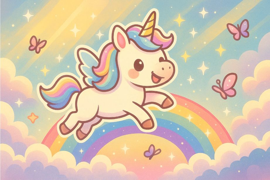 - Experimenteer met achtergrondkleuren: Maak de lucht zachtblauw, de regenboog helder en geef de wolken een roze gloed – dat zorgt voor die magische touch.