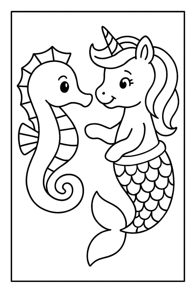 De kleurplaat unicorn zeemeermin brengt land en zee samen in één betoverend beeld. Ze herinnert ons eraan dat fantasie geen grenzen kent – dat je zowel kunt galopperen als zwemmen, dromen als creëren.