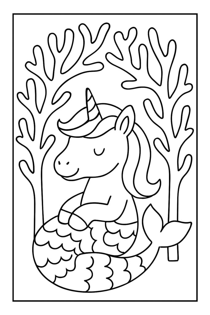 Een kleurplaat unicorn zeemeermin past in elk moment waar verbeelding welkom is.