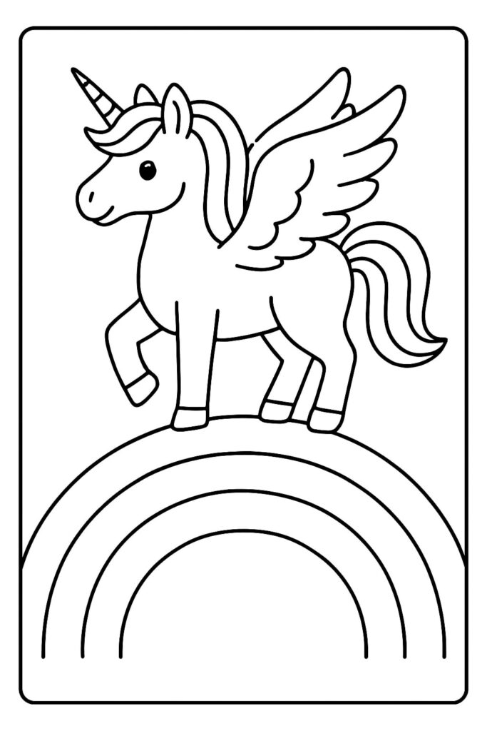 Een Pegasus unicorn kleurplaat combineert fantasie, plezier en fijne motoriek. Herhalende details zoals druppels en sprinkles helpen bij patroonherkenning; zachte kleurverlopen en gouden hoorns maken het resultaat magisch.