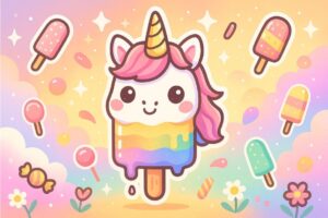 - Kawaii-gezichten: ronde ijsjes met unicorn-hoorn en grote ogen – dikke lijnen en weinig details maken ze ideaal voor jonge kinderen.