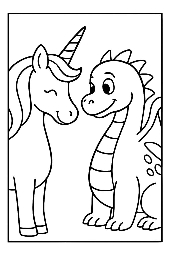 Eenhoorns symboliseren puurheid, licht en dromen, terwijl draken vaak staan voor moed, vuur en mysterie. Samen vormen ze een verhaal over balans – licht en donker, zacht en sterk. Wanneer kinderen een kleurplaat eenhoorn draak inkleuren, werken ze niet alleen met vormen en kleuren, maar ook met contrasten en verbeelding.