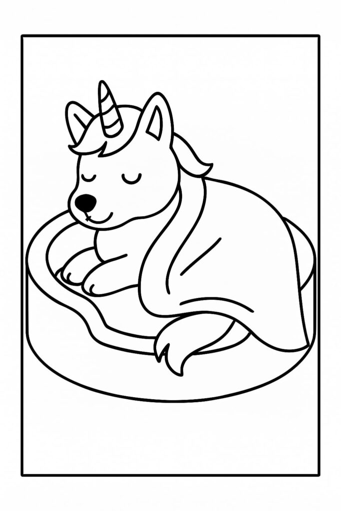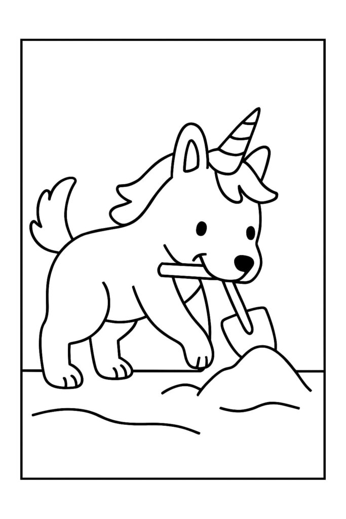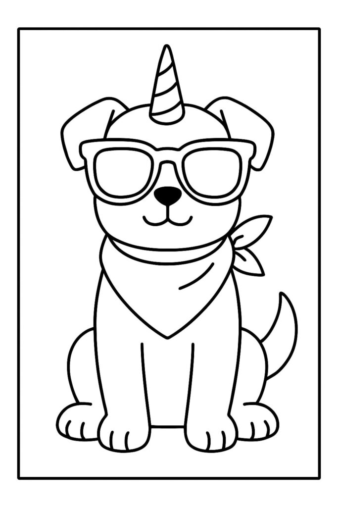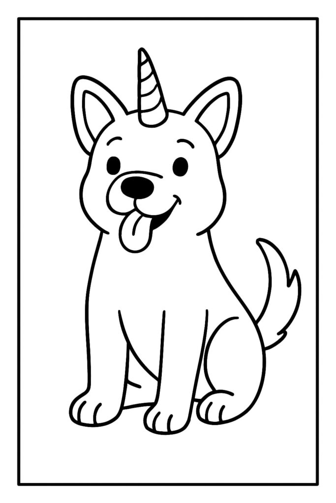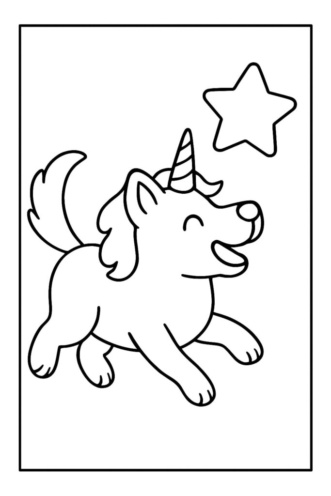 Kleuren is een kalme vaardigheidstrainer. De unicorn hond kleurplaat stimuleert: