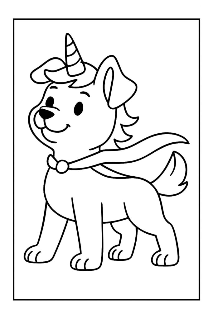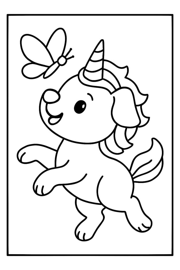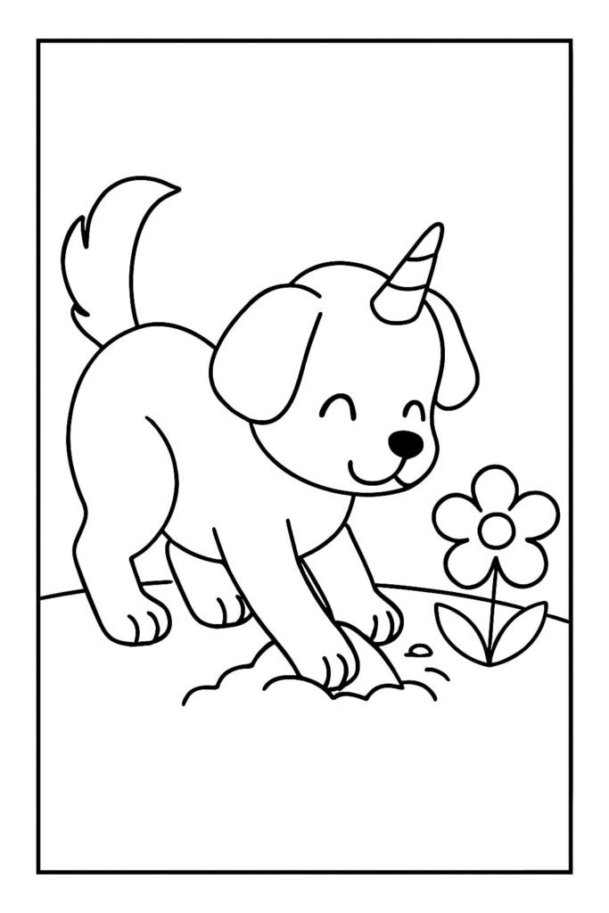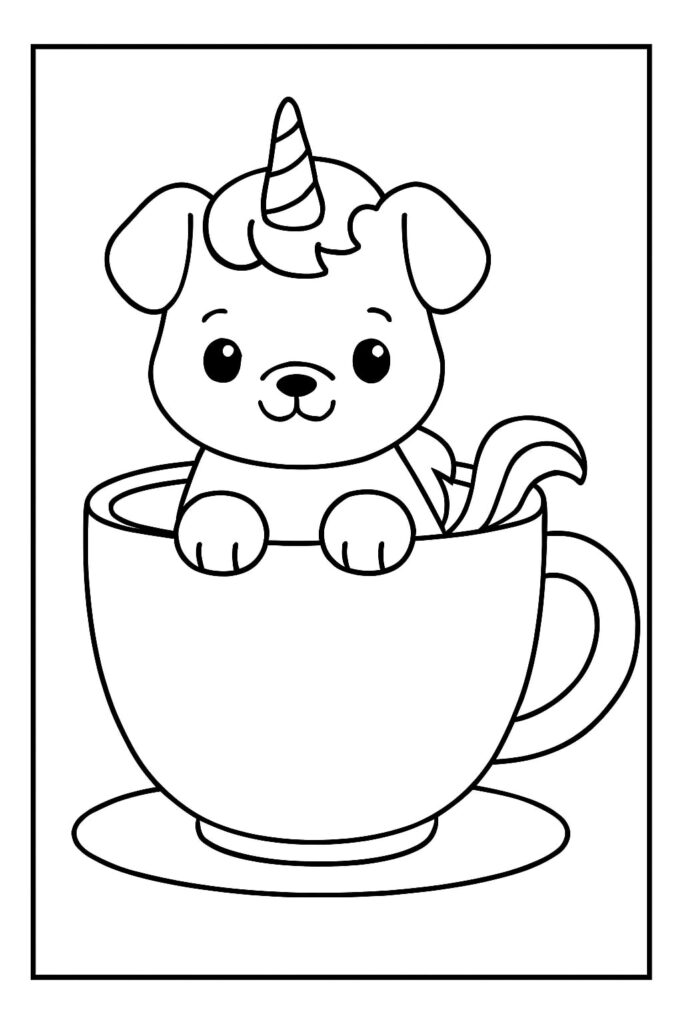 De unicorn puppy kleurplaat verenigt twee van de meest geliefde thema’s onder kinderen: dieren en magie. Puppy’s staan voor vriendschap, speelsheid en trouw, terwijl eenhoorns symbool zijn voor dromen, licht en fantasie. Samen vormen ze een onweerstaanbare combinatie die kinderen uitnodigt om hun verbeelding de vrije loop te laten.