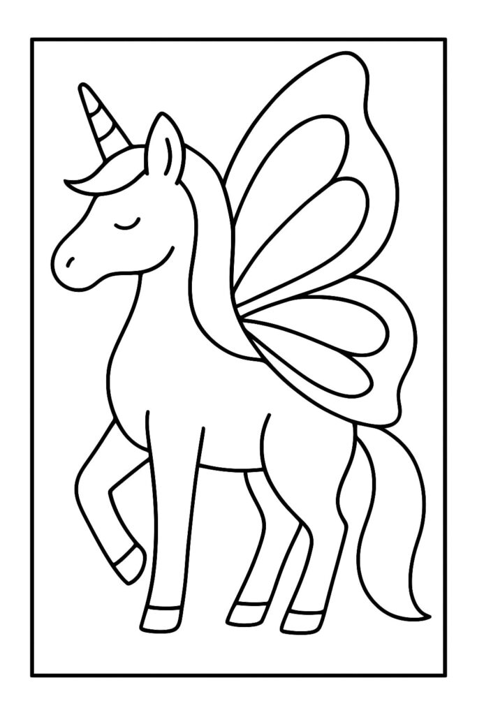 De unicorn vlinder kleurplaat is het perfecte symbool van wat kleuren zou moeten zijn: licht, luchtig en vol verwondering. Elke lijn is een uitnodiging om los te laten en te dromen.