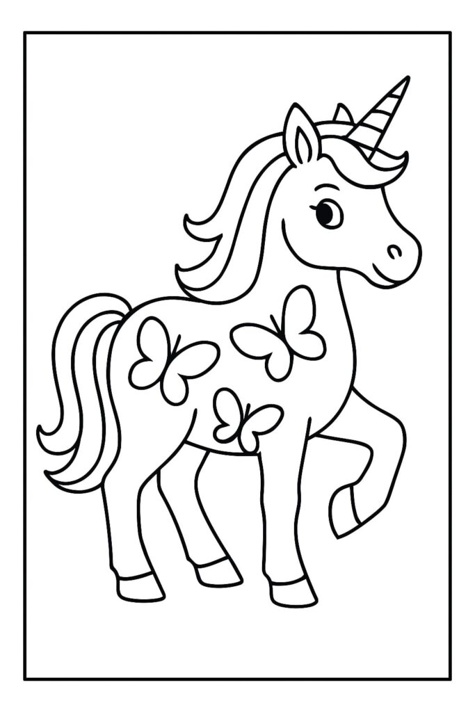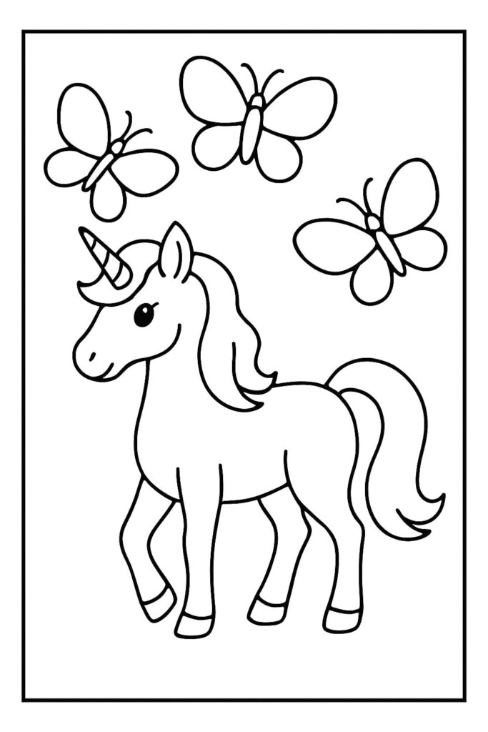 Op unicornkleurplaat.nl vind je een hele serie kleurplaten eenhoorn met vlinders – van eenvoudig tot kunstzinnig.